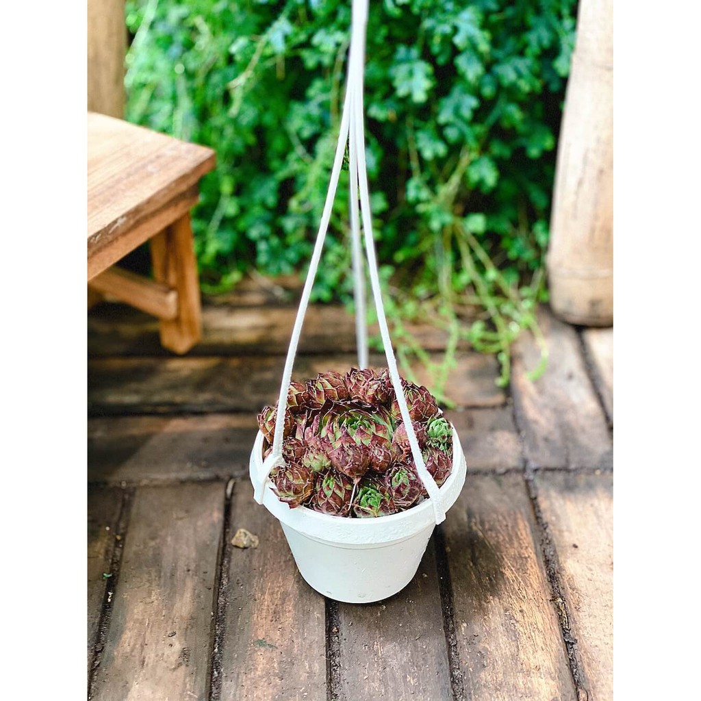 Nhà cửa & Đời sống > Làm vườn > Cây cảnh || Cây Sempervivum Hen and Chicks Black Top (Trường Sinh Thảo Chúc, Gà Mẹ và Gà Con Đầu Đen) chậu nhựa treoCòn hàng