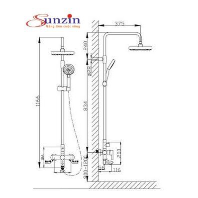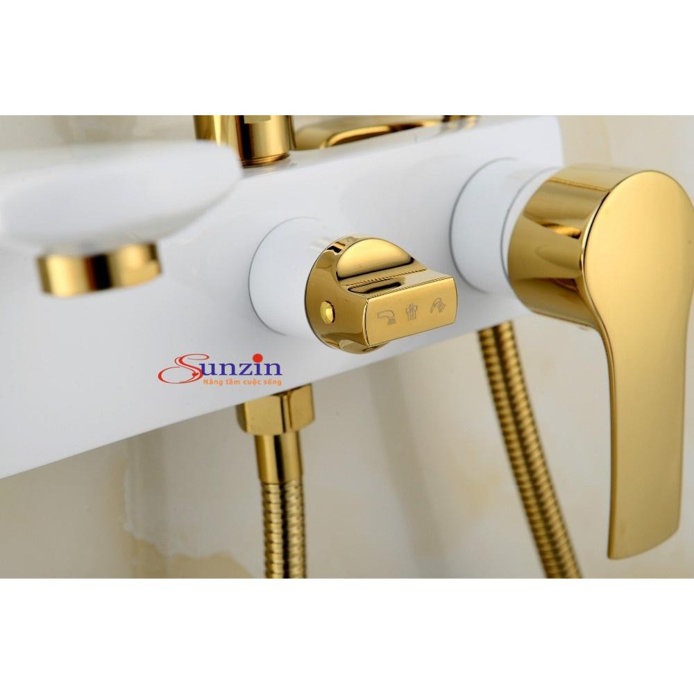 Giới thiệu Sen cây phun mưa Sunzin, chất liệu đồng, sơn tĩnh điện (trắng vàng)