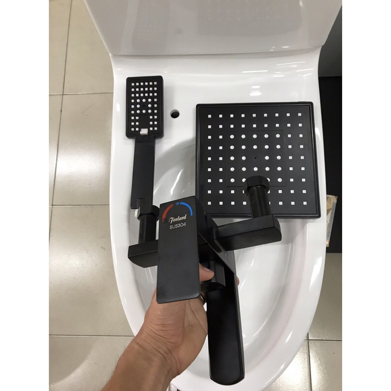 Bộ sen cây tắm vuông nóng lạnh inox304 tĩnh điện màu đen sang trọng đẳng cấp - bảo hành 5 năm