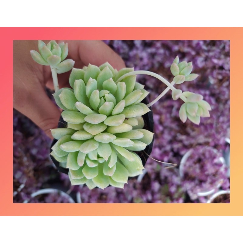 Sen đá dù hồng Đường kính cây 5-8cm.Sen đá, xương rồng là loài cây tượng trưng cho tình yêu và sự may mắn. Sen đá có sức sống mãnh liệt, vì vậy mà người ta thường gửi gắm vào hoa sen đá những ước mơ và nguyện cầu một tình yêu bất diệt, trường tồn với thời gian.