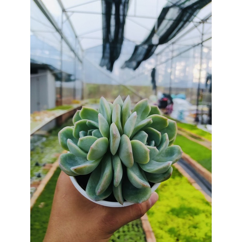 Sen đá liên đài trắng size trung bình đường kính 10-12cm.Sen đá, xương rồng là loài cây tượng trưng cho tình yêu và sự may mắn. Sen đá có sức sống mãnh liệt, vì vậy mà người ta thường gửi gắm vào hoa sen đá những ước mơ và nguyện cầu một tình yêu bất diệt, trường tồn với thời gian.