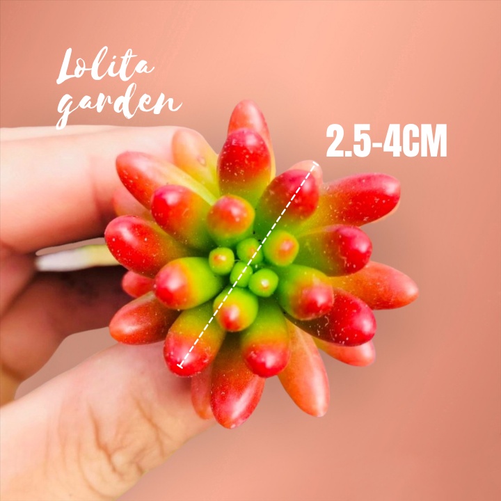Sen đá thạch ngọc đỏ Đường kính cây 2,5-4cm.Sen đá, xương rồng là loài cây tượng trưng cho tình yêu và sự may mắn. Sen đá có sức sống mãnh liệt, vì vậy mà người ta thường gửi gắm vào hoa sen đá những ước mơ và nguyện cầu một tình yêu bất diệt, trường tồn với thời gian.