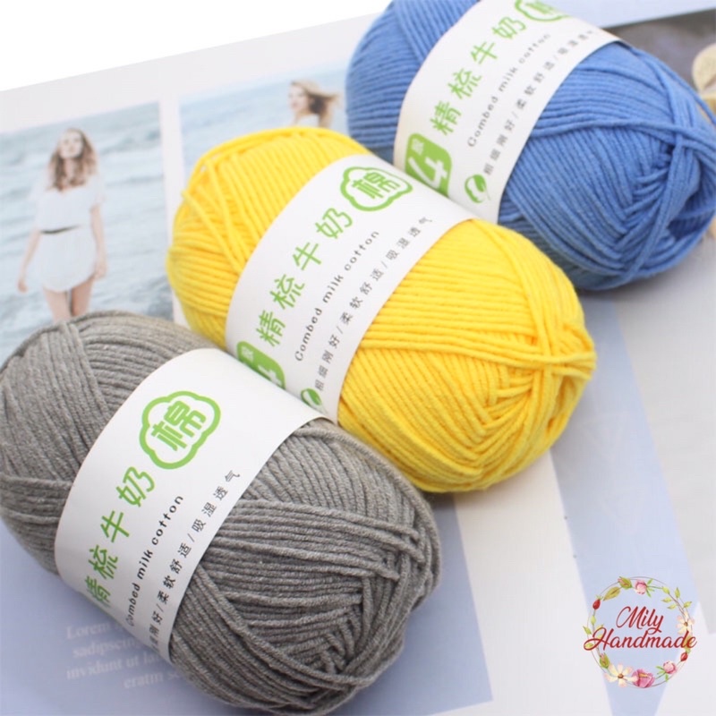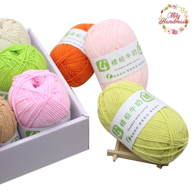 Len milk cotton combed 4ply-Là dòng len nội địa trung cao cấp milk cotton pha trộn giữa sợi acrylic và sợi cotton rất an toàn với trẻ nhỏ