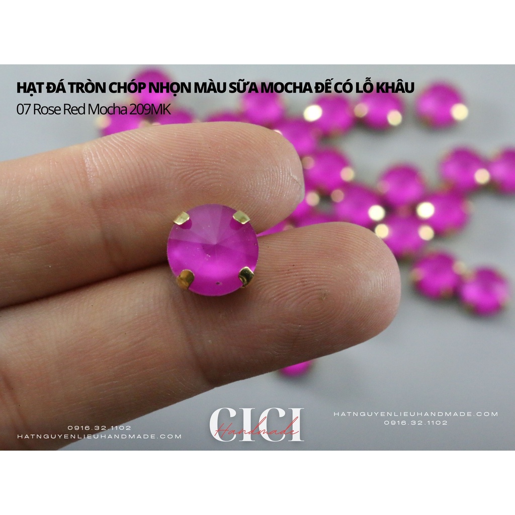 Sở thích & Sưu tầm > Dụng Cụ May Vá || Set 10 hạt đá tròn chóp nhọn màu sữa mocha đế vàng có lỗ khâu Cici HandmadeCòn hàng