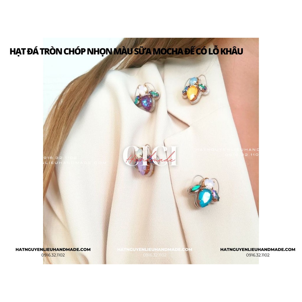 Đá giọt nước màu Mocha đế trắng có lỗ khâu nặng tay, đế TRẮNG BẠC có lỗ khâu dùng để khâu đính váy, quần áo, phụ kiện thời trang, làm đồ handmade,....