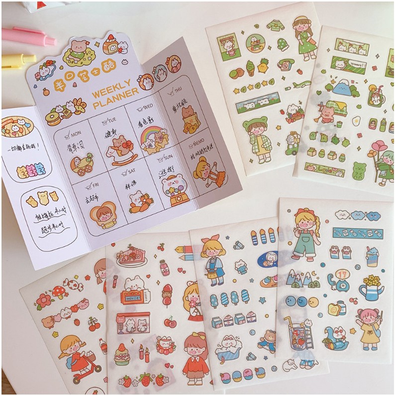 Set 10 hình dán , nhãn dán điện thoại tai nghe airpods trang trí cô gái dễ thương Hàn QuốcĐóng gói gòm 1 tờ bìa kế hoặc tuần + 10 hình dán
