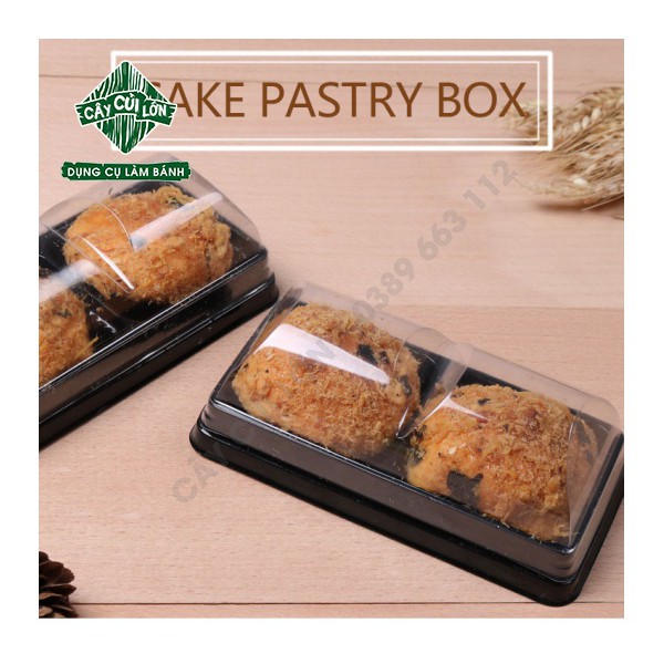 Hộp 2 bánh mini kích thước 5.5cm thích hợp cho các loại bánh 50-68gHộp nhựa khay đen nắp trong