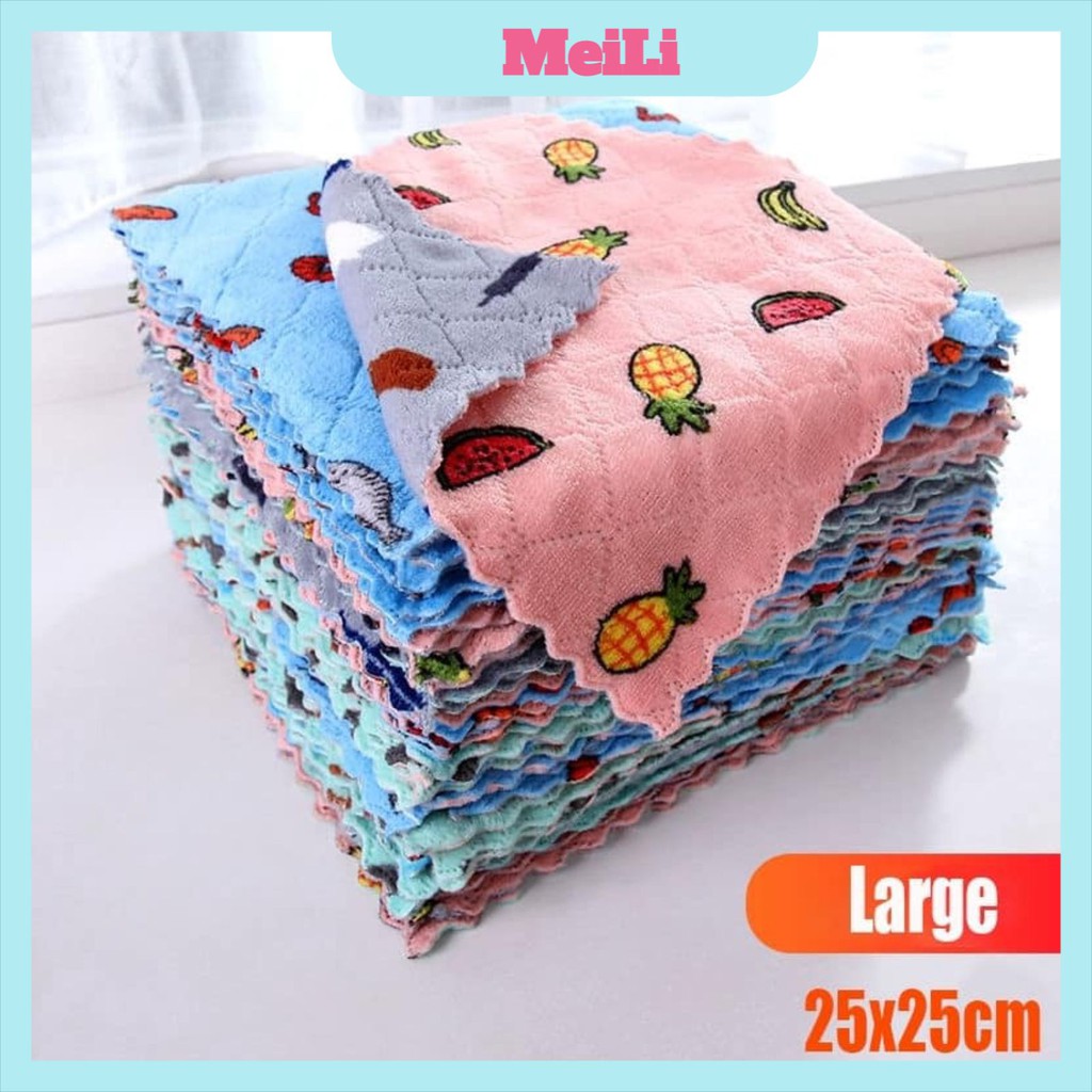 Set 10 Khăn Lau 2 Mặt Họa Tiết Hoa Quả 25x25cm Siêu Thấm Hút Nước - Khăn Lau Lông CừuKHĂN ĐA NĂNG LAU BẾP MẪU MỚI !!!!