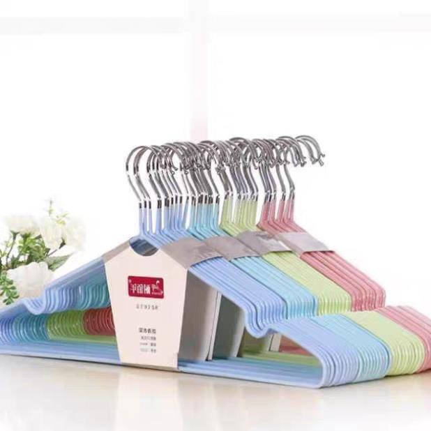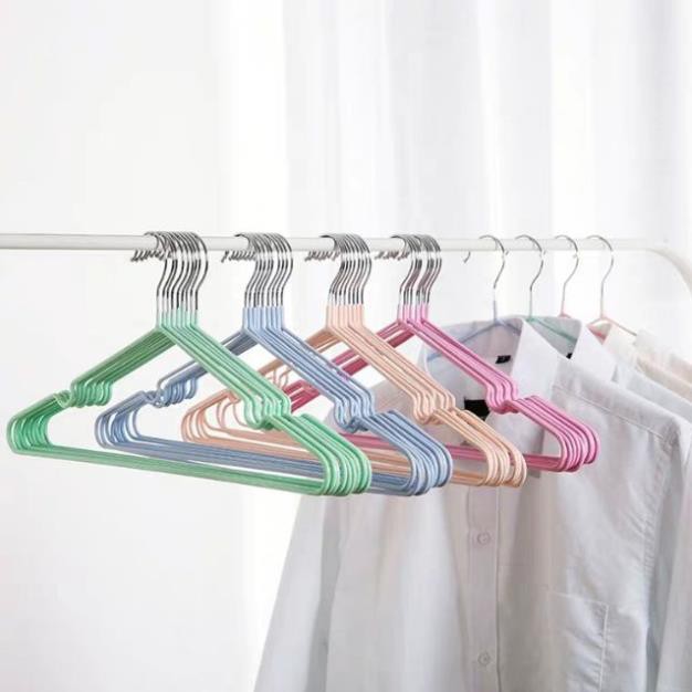 Set 10 mắc inox dày cao cấp bọc nhựa chống bay hằn quần áo 2 size trẻ em và người lớn