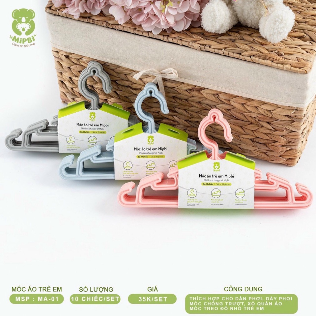Set 10 Móc Treo Đồ, Treo Quần Áo Cho Bé Mipbi Cao Cấp
