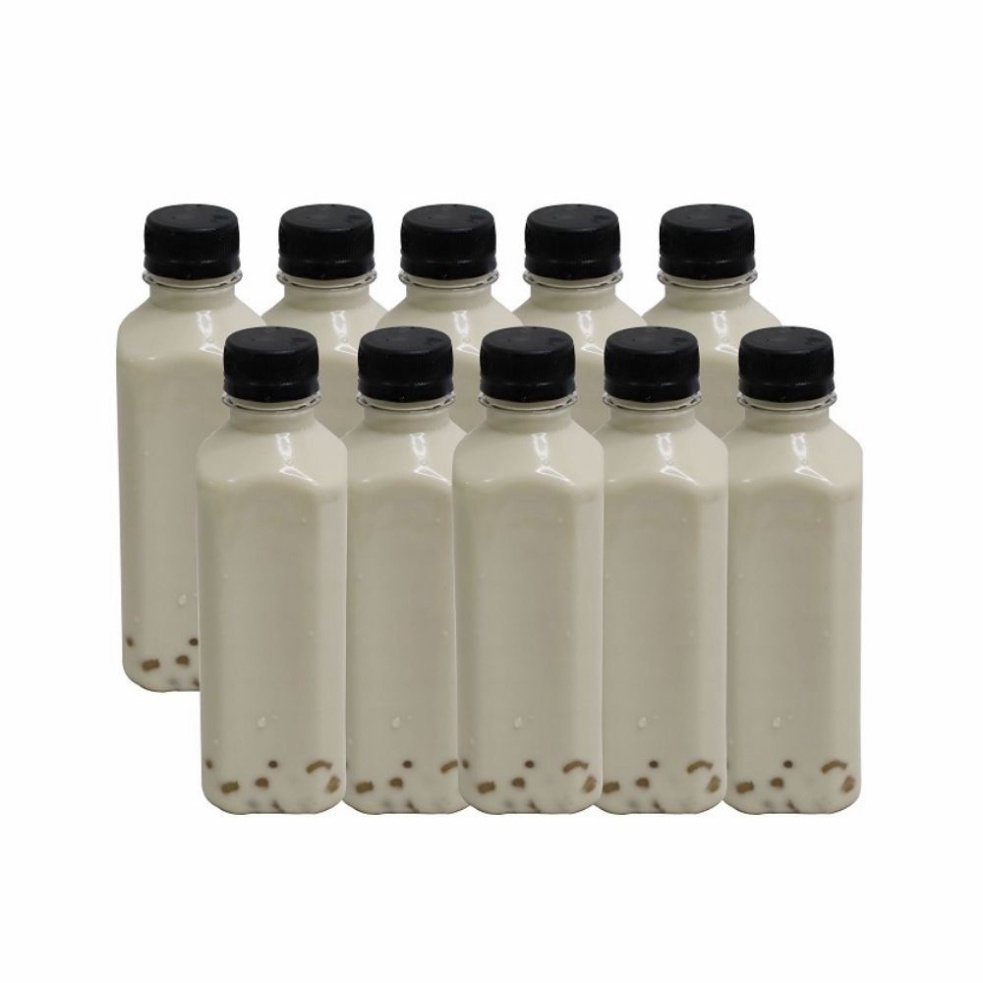 set 100 chai nhựa vuông 350ml nắp đen làm trà thái