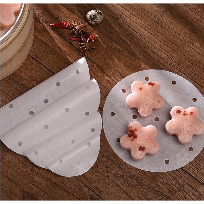 Set 100 Giấy nến lỗ hấp bánh bao/nồi chiên không dầu size 23cm💸36k