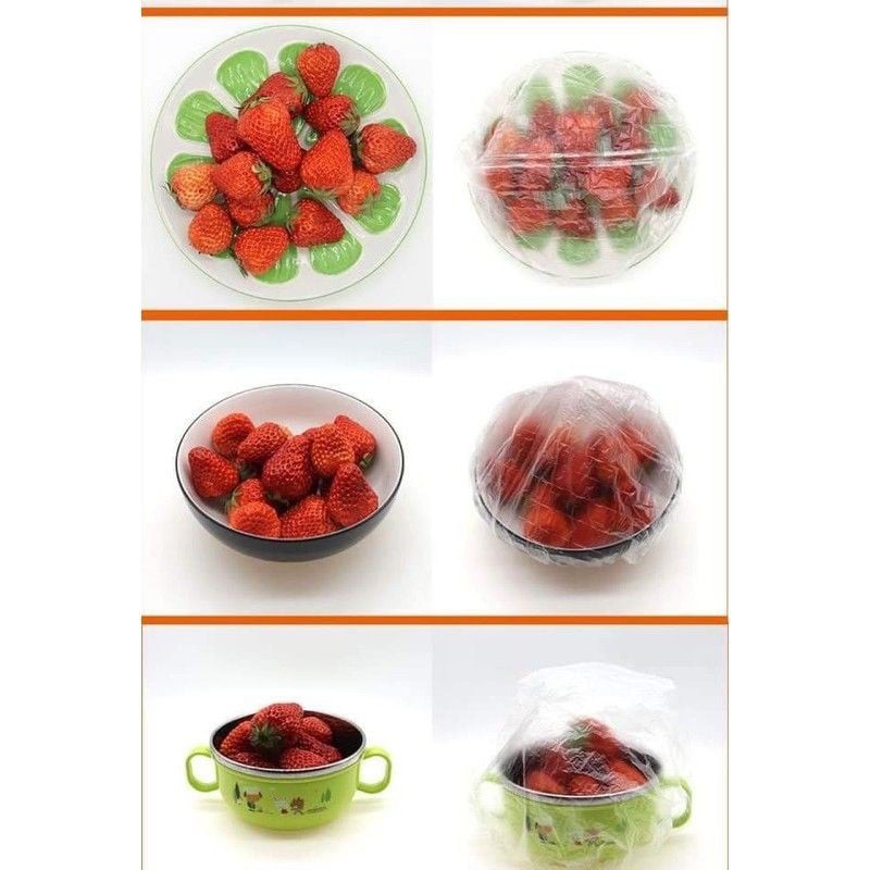 Set 100 Túi bọc thực phẩm Freeship Màng bọc thực phẩm co giãn có chun vừa với tất cả các loại bát đĩa