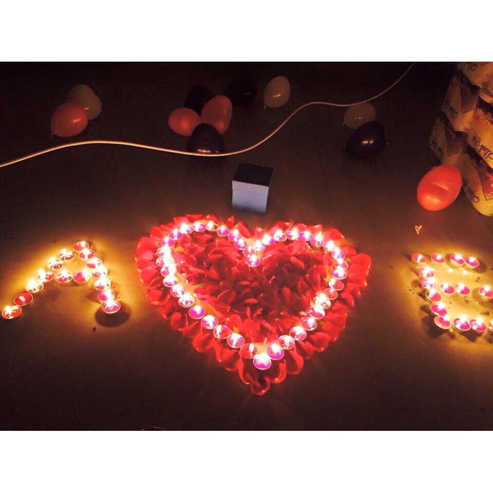 Nhà cửa & Đời sống > Trang trí nhà cửa > Hoa trang trí || SET 100 nến tealight đỏ + 100 cánh hoa giả lụa + 10 bóng cao su timCòn hàng