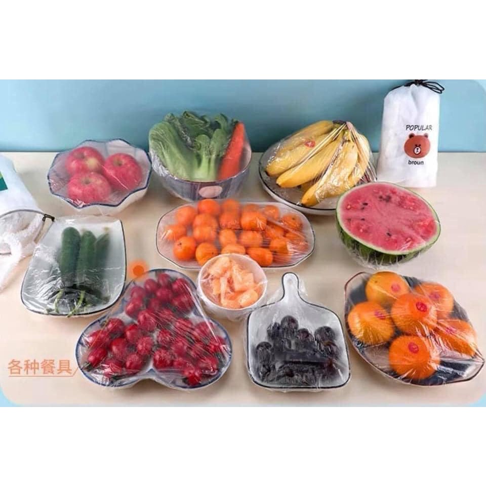 🍃 SÉT 100 TÚI BỌC THỰC PHẨM BO CHUN KÈM TÚI XÁCH HÌNH GẤU------------