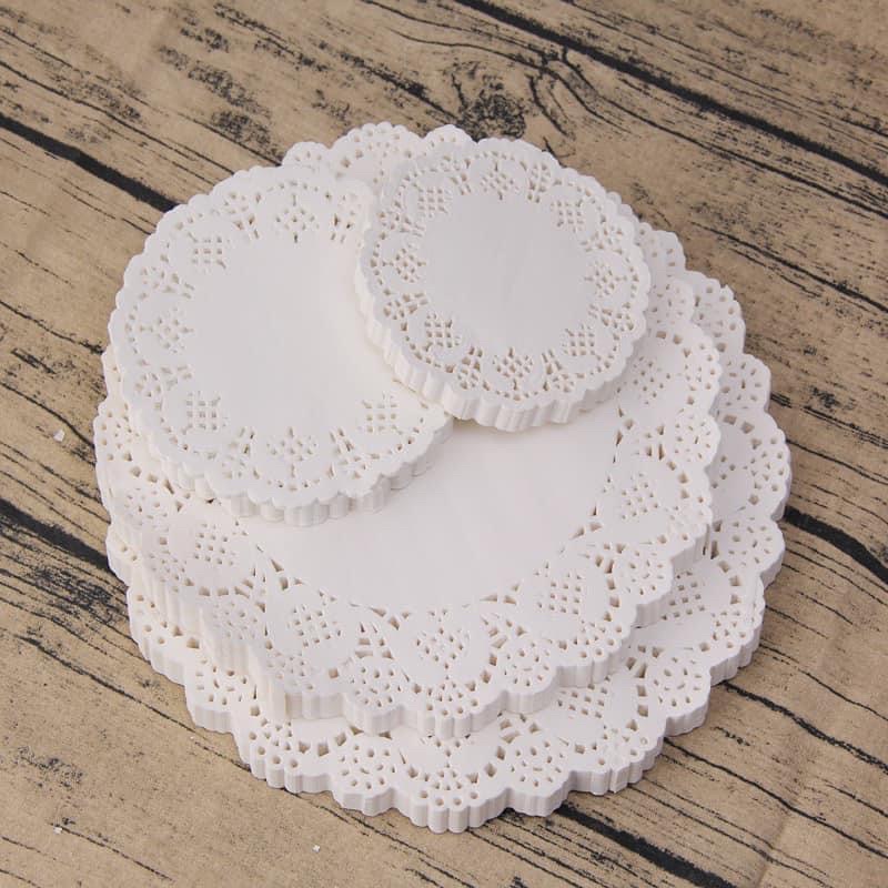 Nhà cửa & Đời sống > Dụng cụ nhà bếp > Dụng cụ nướng & trang trí bánh || SET 140 tờ giấy THẤM DẦU hình tròn đục họa tiết sz 21cmCòn hàng