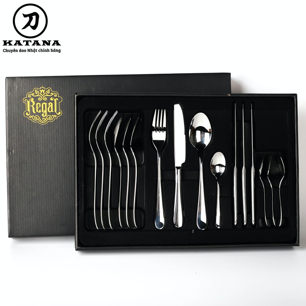 Nhà cửa & Đời sống > Bộ đồ bàn ăn > Bộ dao kéo || Set 16 món dao thìa dĩa cao cấp REGAL - vân trơn sáng bóng, sang trọng Elegance VTK-02Còn hàng