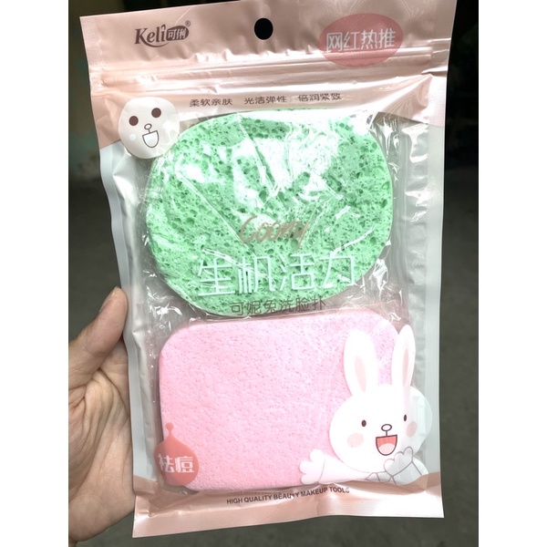 [Bọt Biển Rửa Mặt] Set 2 Bông mút bọt biển rửa mặt Keli,Lady time