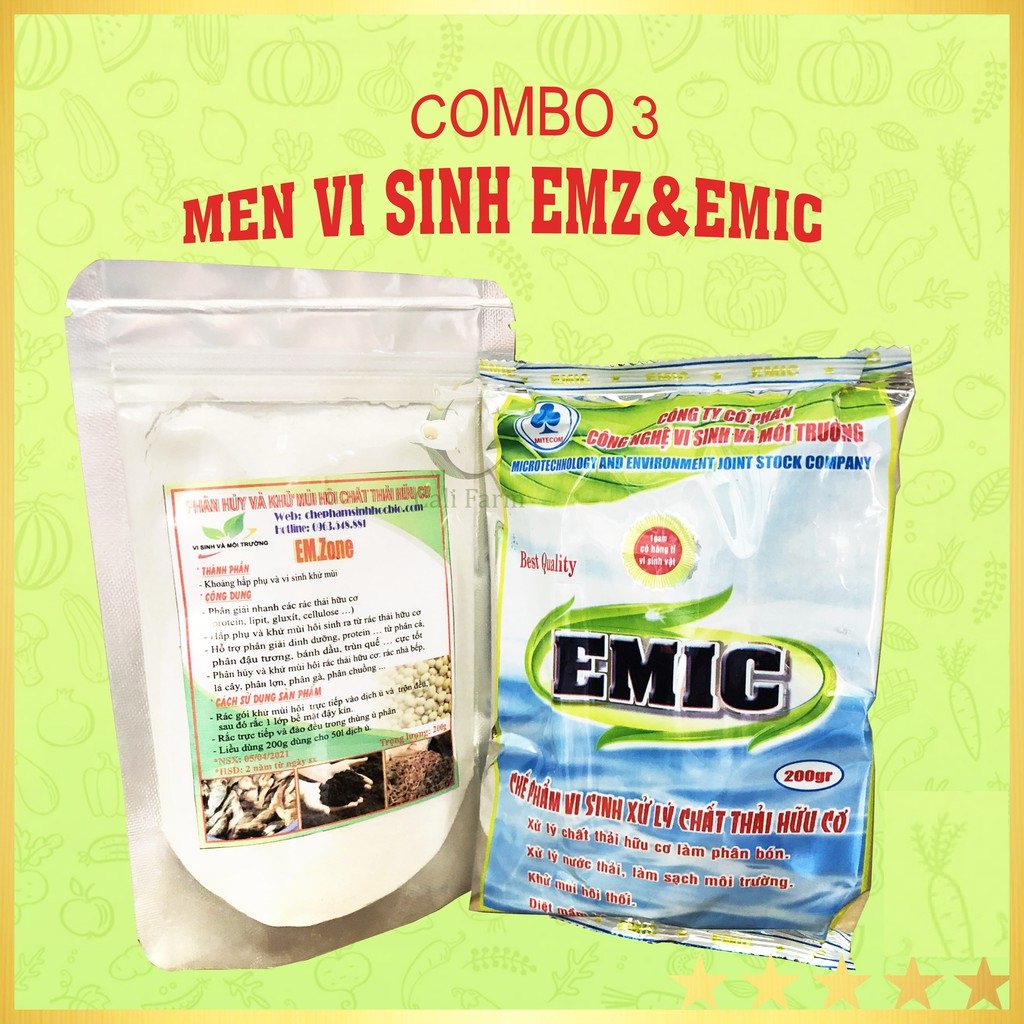 Giới thiệu SET 2 gói chế phẩm (Emic và Emzone) ủ phân hữu cơ từ rác thải nhà bếp, ủ đậu tương, cá ... không mùi hôi