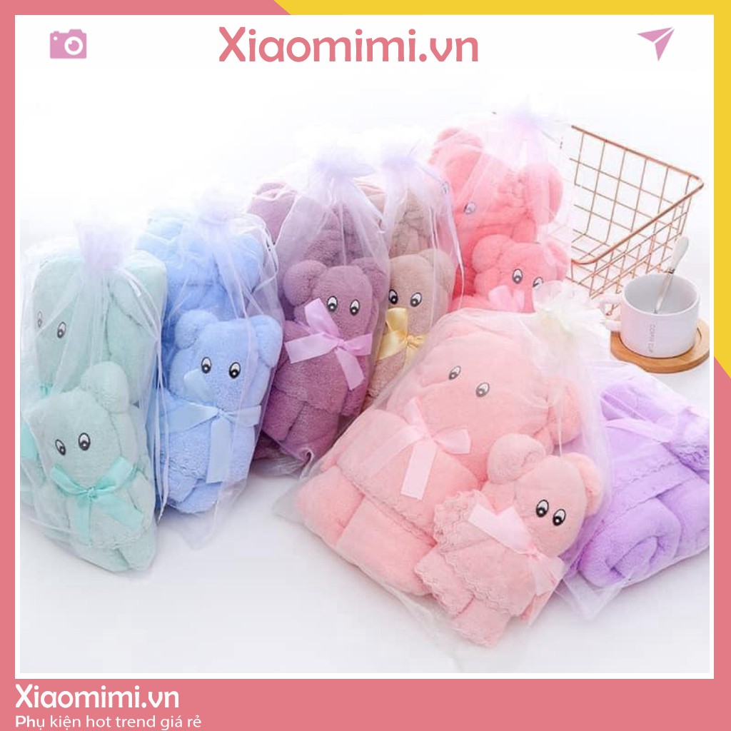 Sét 2 khăn siêu thấm hình gấu voi đẹp tuyệt vời