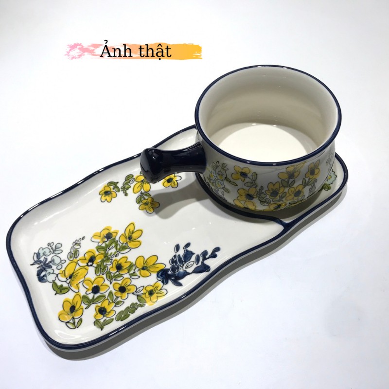 Nhà cửa & Đời sống > Bộ đồ bàn ăn > Dĩa || Set 2 món bát đĩa ăn sáng cao cấp họa tiết Mai VàngCòn hàng
