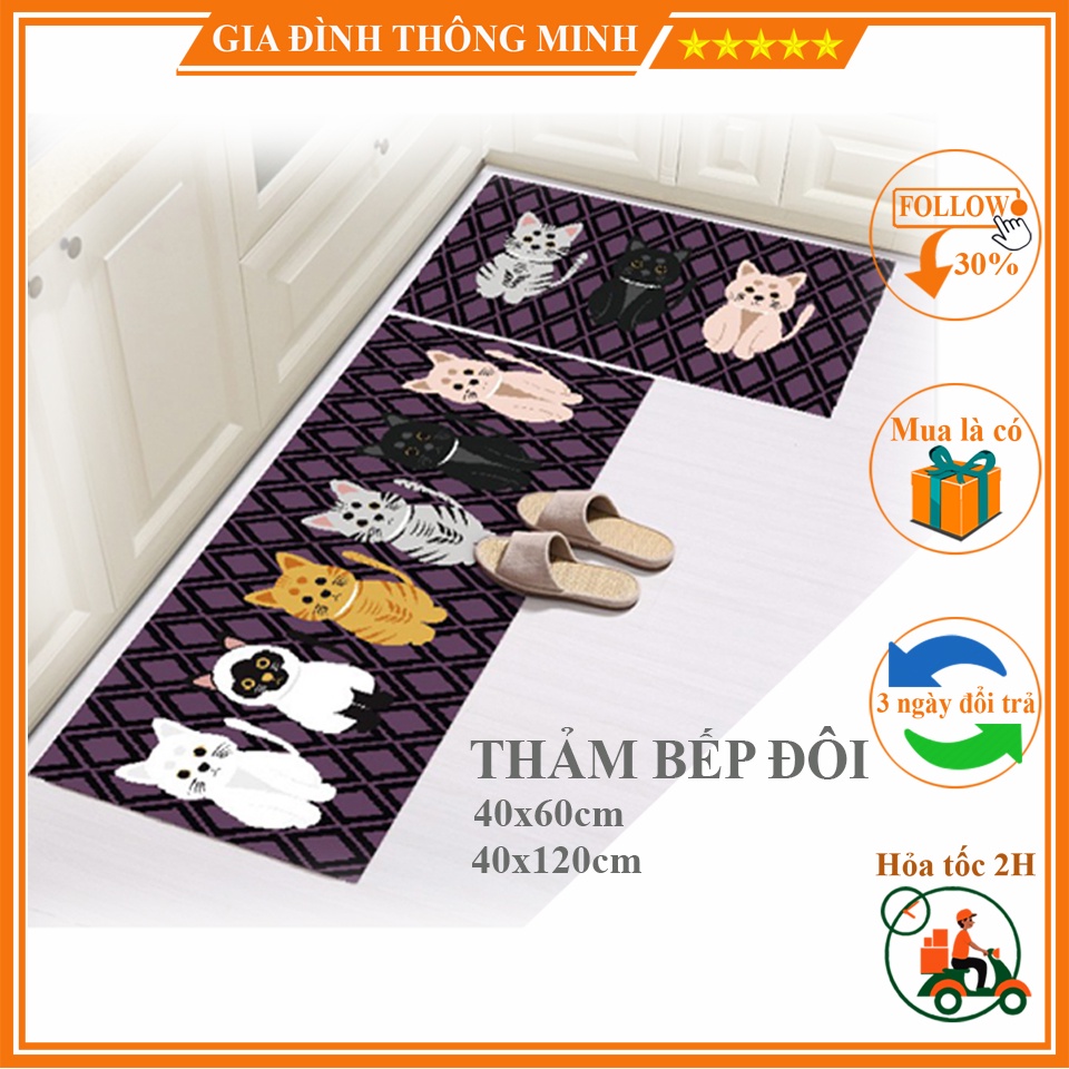 (𝗚𝗶𝗮́ 𝗦𝗶̉) Set 2 Thảm Bếp Đôi 3D Cao Cấp Chống Trơn Trượt THAMBEPDOI ( Bộ 2 thảm 40*60cm & 40*120cm)