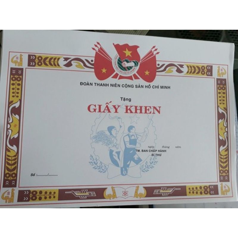 Giấy khen đoàn A4quy cách đóng gói: 20 tờ