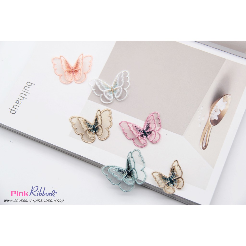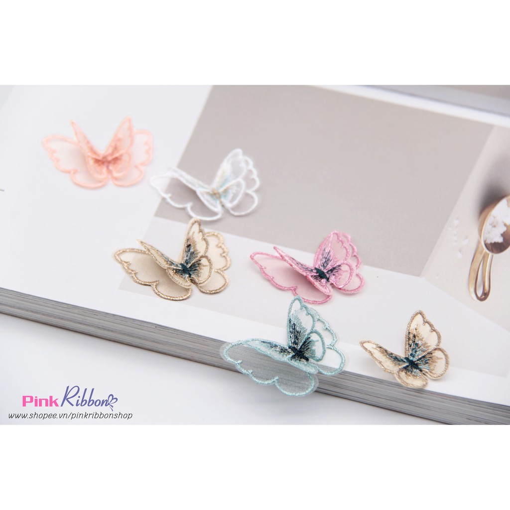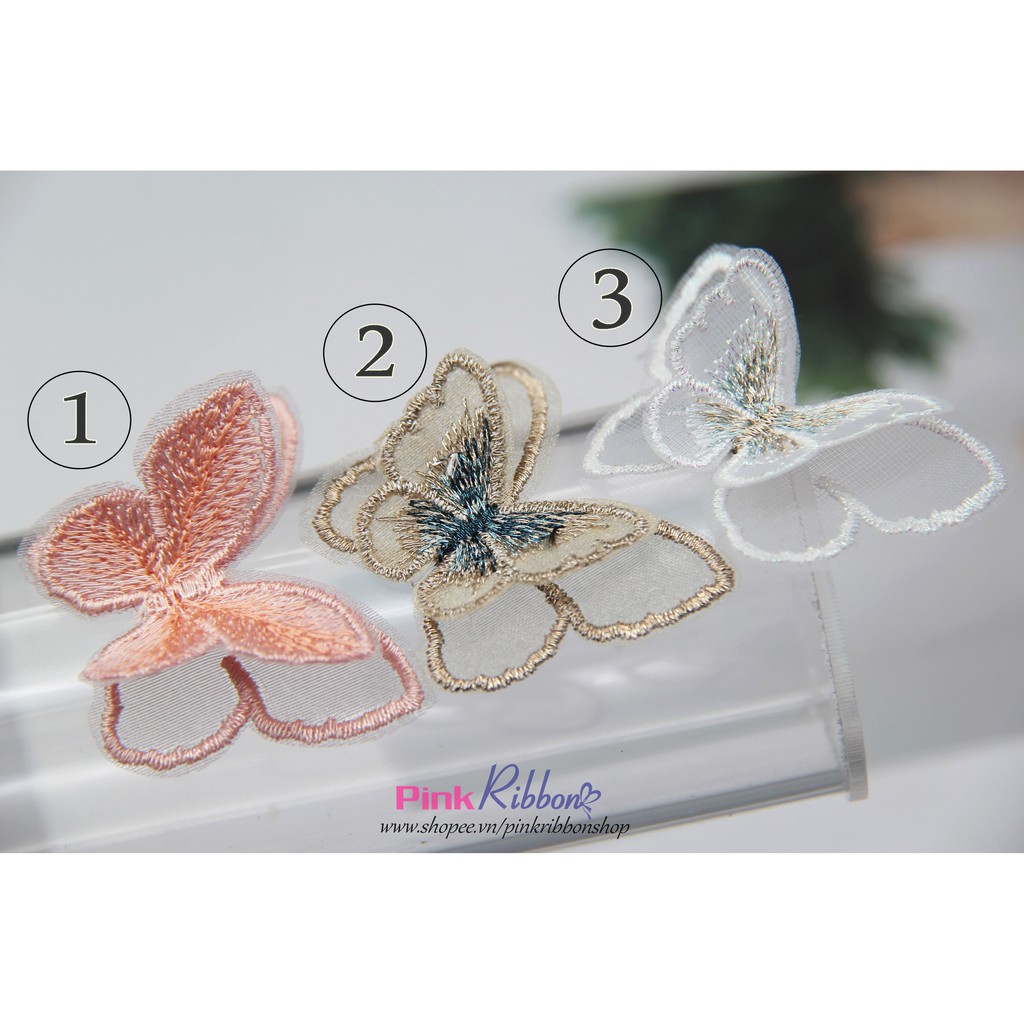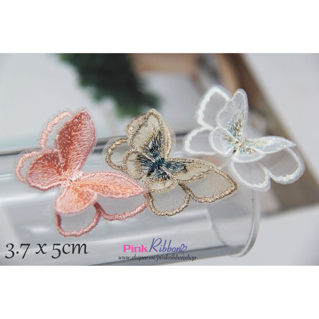 Bướm chất liệu voan, thêu bô đê chỉ ánh nhũ cao cấpKích thước: 5*3.7cm . mẫu trắng số 2 (4.5cm*3,7cm)
