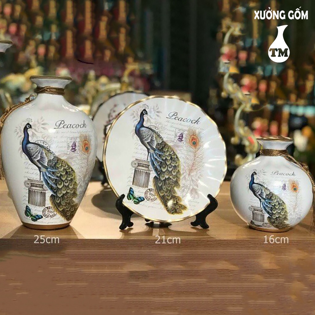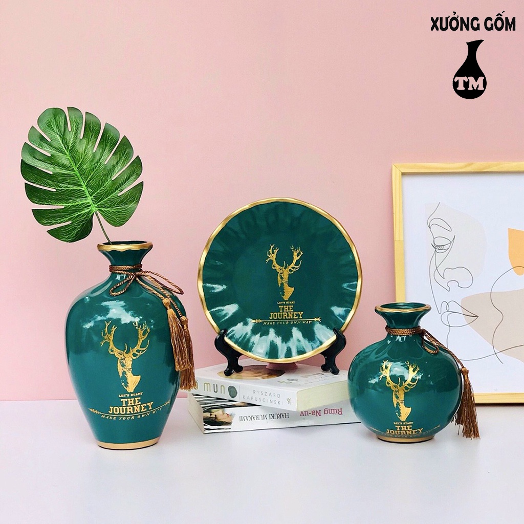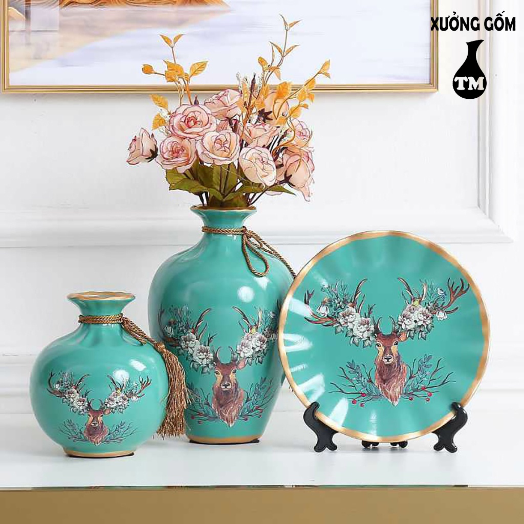 Set 3 Bình Hoa Xưởng Gốm TM Bát Tràng Họa Tiết Gốm Sứ Decor Cao Cấp (Giao mẫu ngẫu nhiên)