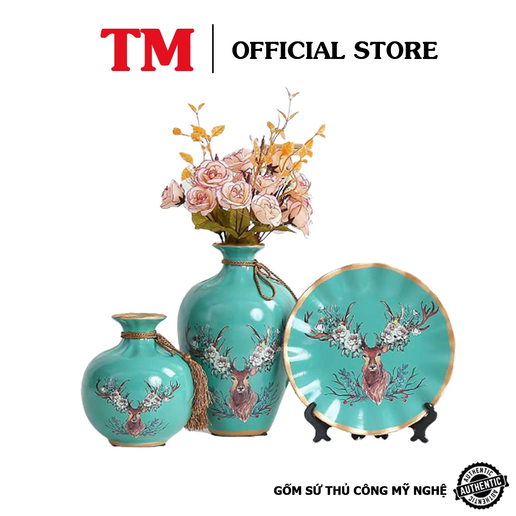 Giới thiệu Set 3 Bình Hoa Xưởng Gốm TM Bát Tràng Họa Tiết Gốm Sứ Decor Cao Cấp (Giao mẫu ngẫu nhiên)