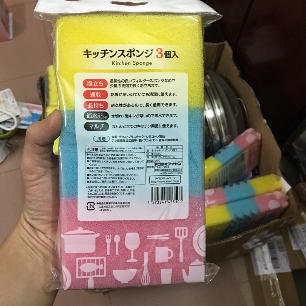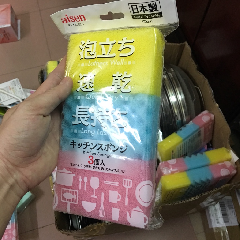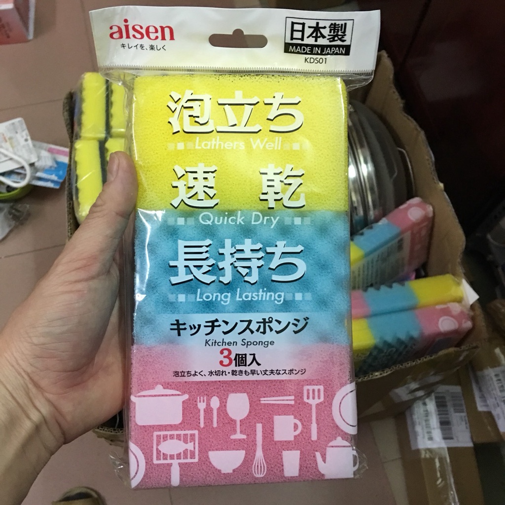 Set 3 cái Mút rửa đa năng tiết kiệm xà phòng Aisen Nhật Bản KDS01- Hãng sản xuất: Aisen NHẬT BẢN