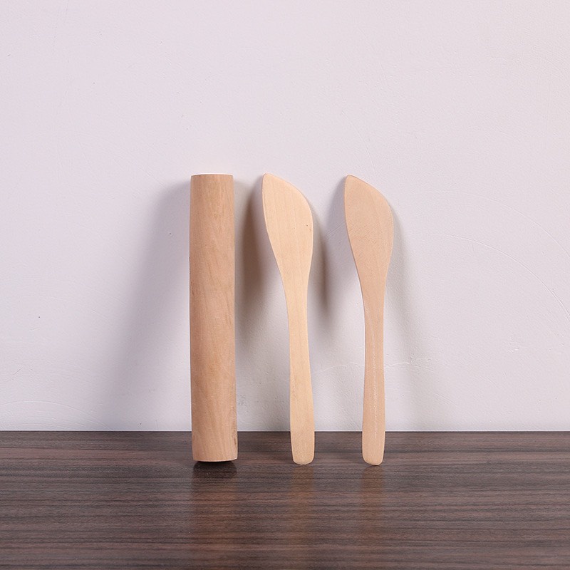 Set 3 cây lăn bột, vét bột, muỗng làm bánh bằng gỗ đa năng