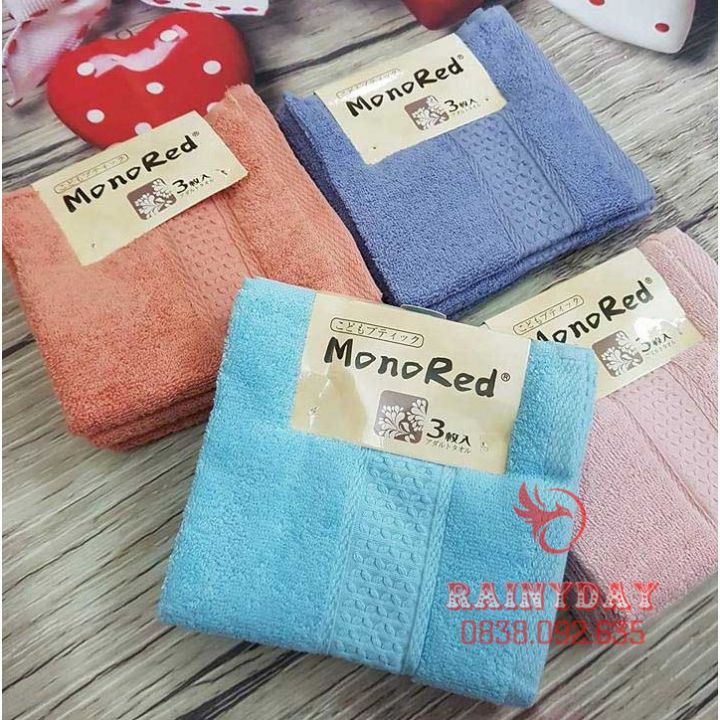 Giới thiệu Set 3 khăn mặt monored nhật cotton siêu mềm mịn cho em bé trẻ con lau rửa cho vuông cao cấp
