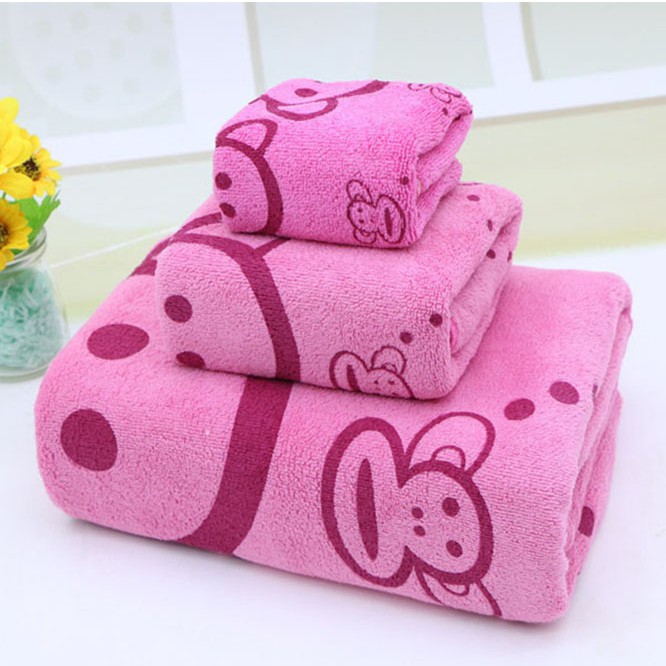 Set 3 khăn tắm, gội, rửa mặt tiện lợi cho cả gia đình.Khăn cực mềm, an toàn cho da, siêu thấm hút.