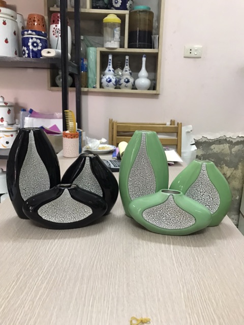 #lohoa #lohoatrangtri #lohoanghethuat #lohoabattrang #gomsubattrang #gomsu🔻Set lọ gồm 3 chiếc kích thước