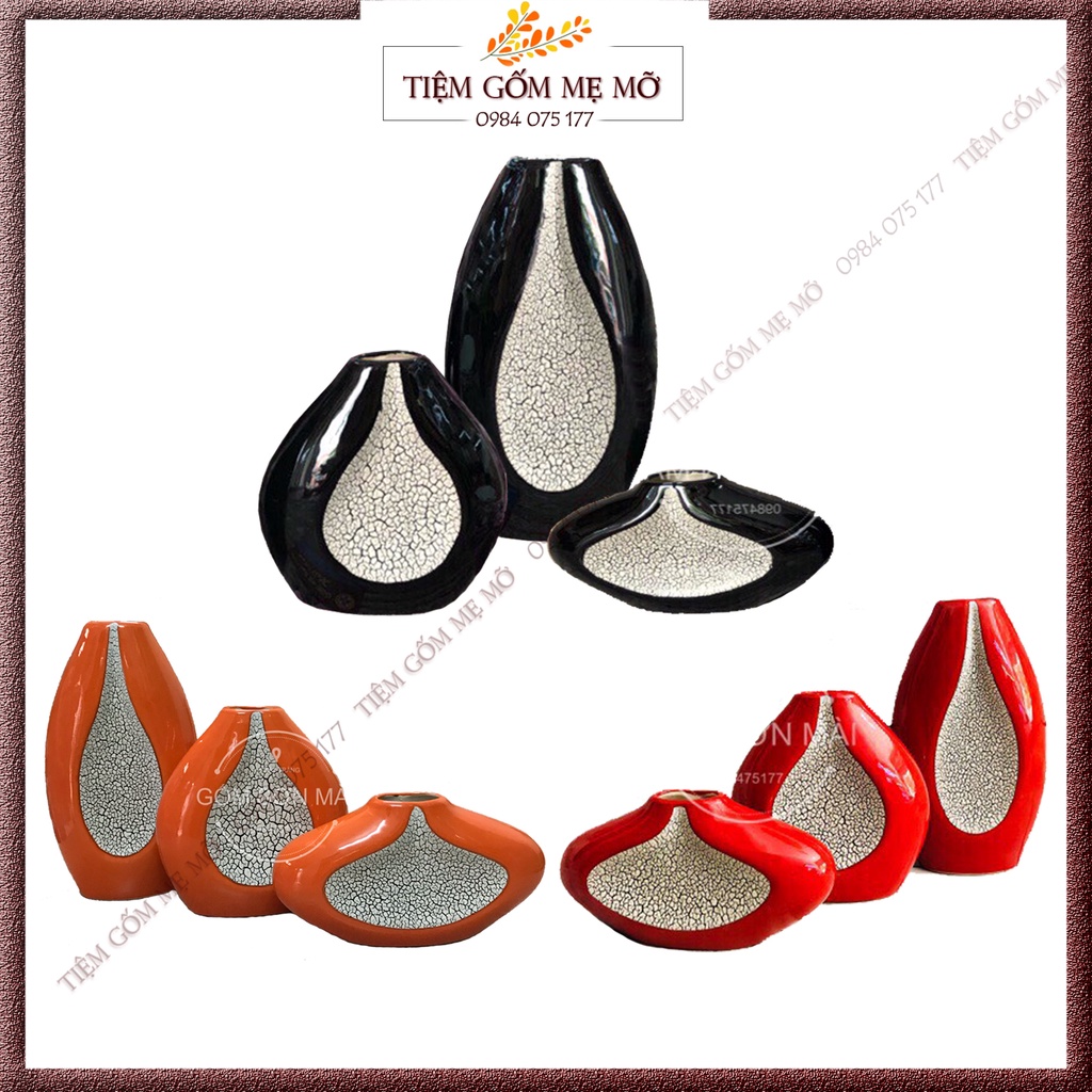 Set 3 lọ decor trang trí gốm sứ Bát Tràng nhiều màu