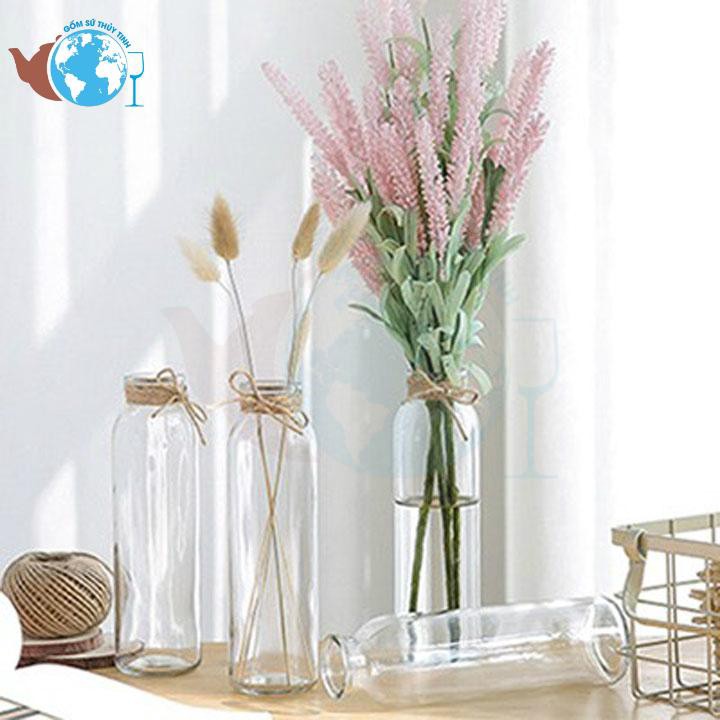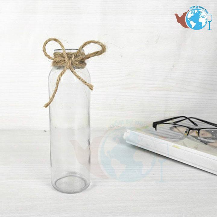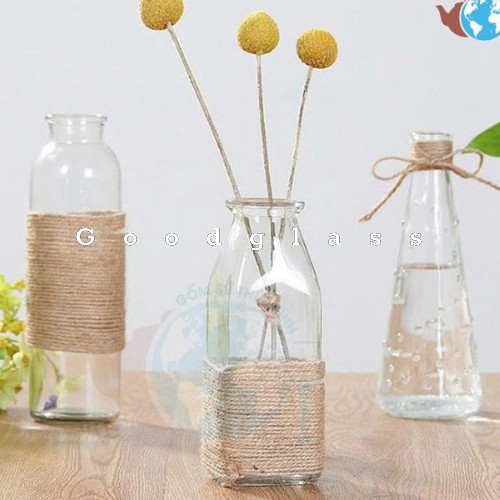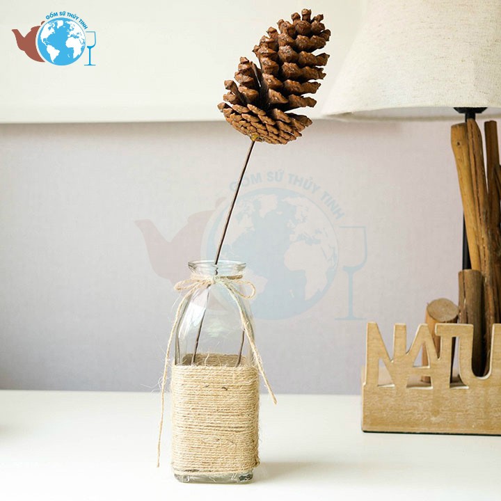 Set 3 lọ hoa decor thủy tinh vuông tròn tam giác / Bình thủy tinh cuốn dây thừng tặng kèm dây trang trí