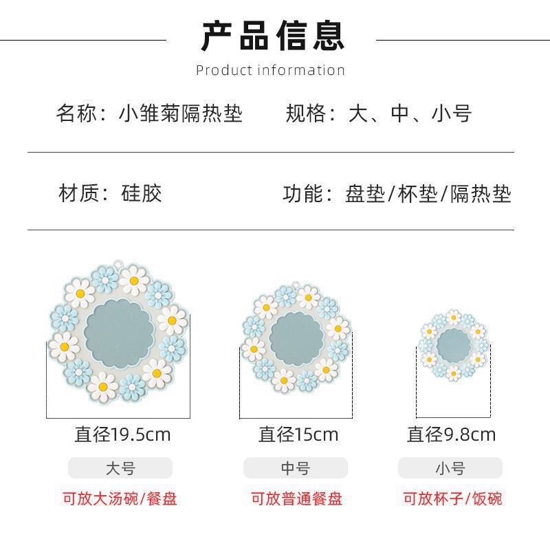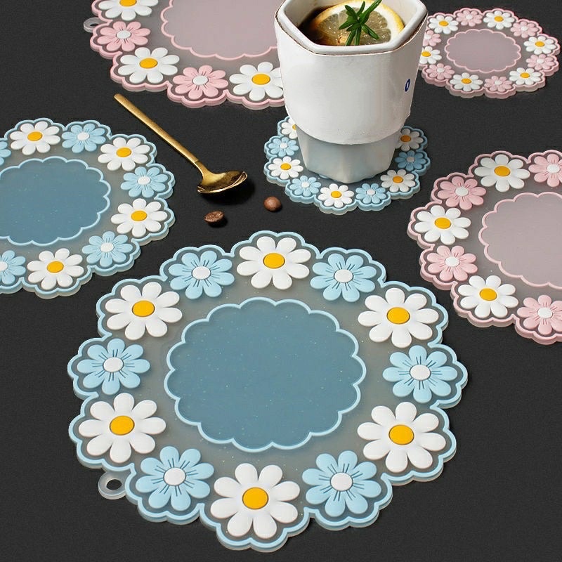Nhà cửa & Đời sống > Bộ đồ bàn ăn > Khay, tấm lót bàn ăn || Sét 3 miếng lót cách nhiệt bát đĩa cốc chén xoong nồi silicone đa năng hình hoa cúc trang trí xinh xắnCòn hàng
