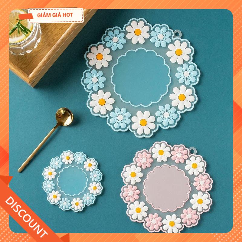 Sét 3 miếng lót cách nhiệt bát đĩa cốc chén xoong nồi silicone đa năng hình hoa cúc trang trí xinh xắn