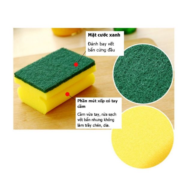 Mút rửa chén 2 mặt tạo bọt mút chứa tính kiềm nhẹ, lấy đi các vết bẩn, dầu mỡ cứng đầu trên bếp gas, lò viba, lò nướng, tủ lạnh, quạt thông gió