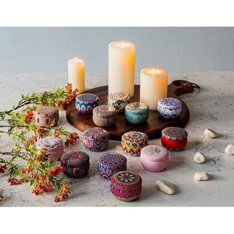 - Nến thơm có vỏ hộp làm từ thiếc trang trí bắt mắt, sang trọng.
