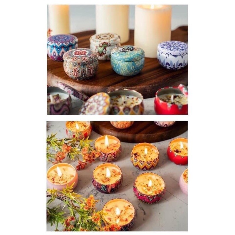 Mỗi lọ nến 80g. Kích thước 6,3*4,2cm. Đựng trong hộp thiếc hoa văn rất đẹp và an toàn