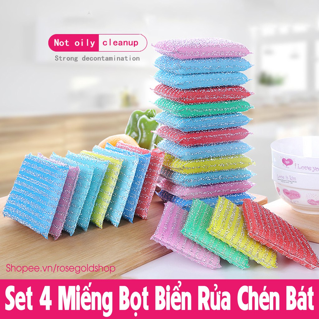 Set 4 Miếng Bọt Biển Rửa Chén Bát Vệ Sinh Nhà Cửa Tiện Lợi