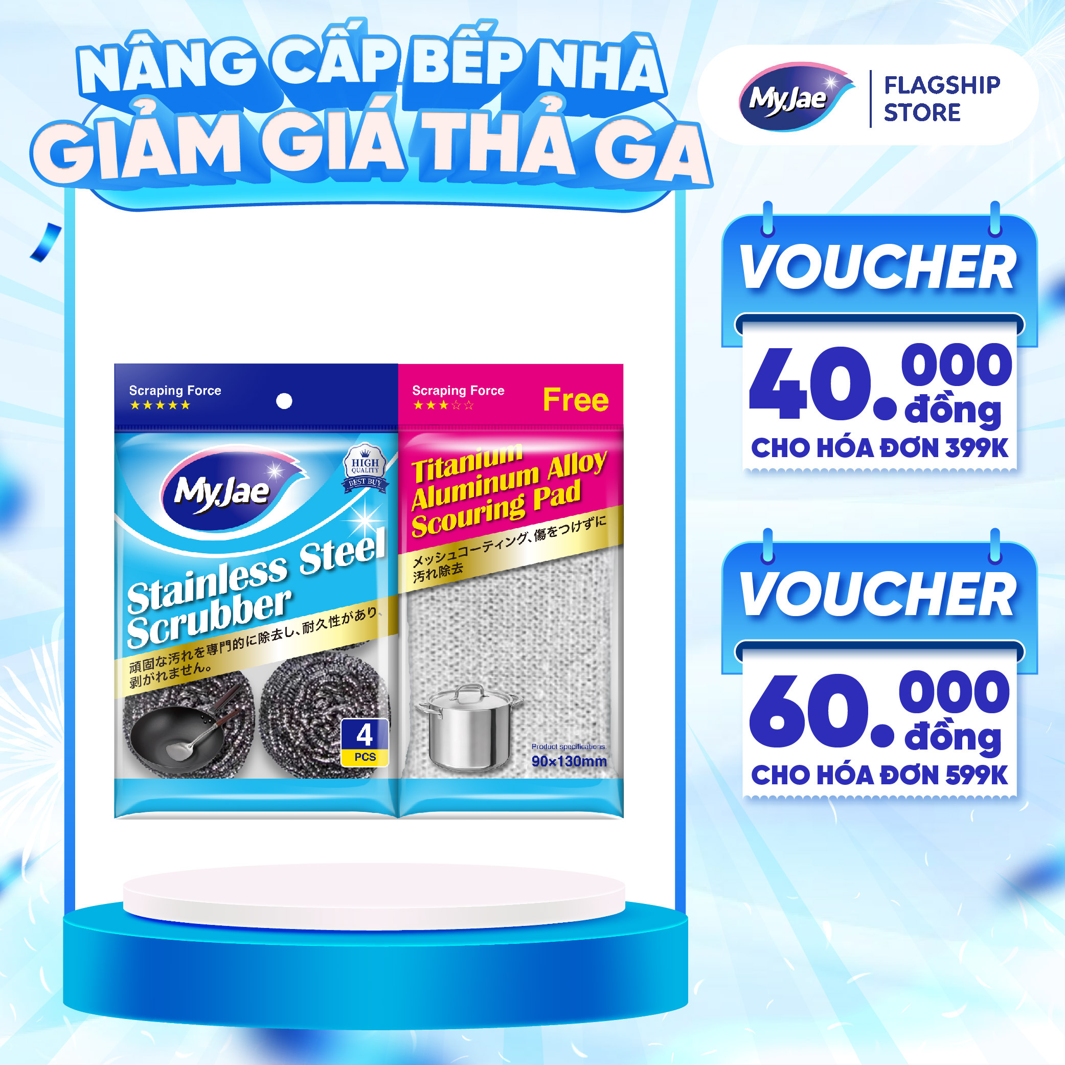 Set 4 Miếng Búi Sắt Cọ Xoong Nồi Kèm 1 Miếng Chà Nồi Đa Năng MyJaeSố lượng: 4 búi + 1 miếng chà nồiChất liệu: được làm bằng Titan, thép không gỉ, không làm đau tayĐộ bền cao: khó bị vỡ cấu hình sản...- Giao hàng toàn quốc