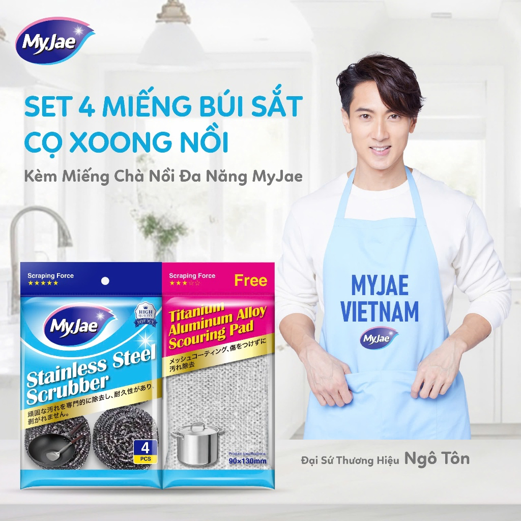 SET 4 Miếng Búi Sắt Cọ Xoong Nồi KÈM Miếng Chà Nồi Đa Năng MyJae
