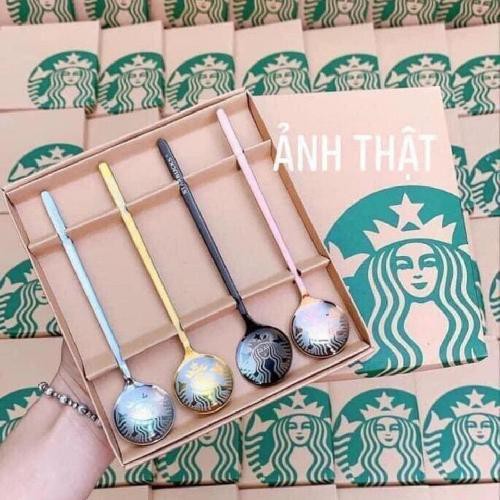 Hộp 4 thìa 4 màu Vàng/Bạc/Hồng/ĐenThìa tuồn dư hãng Star.bucks