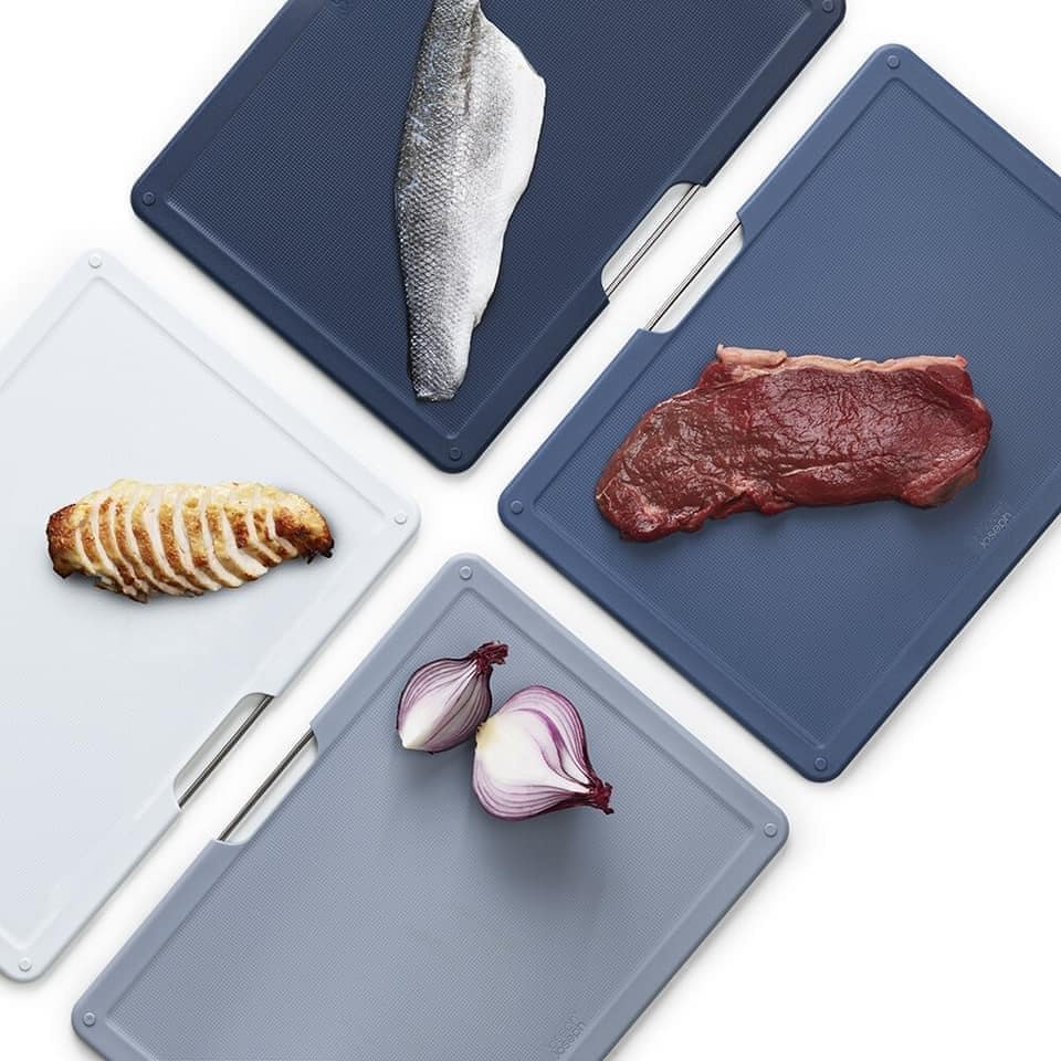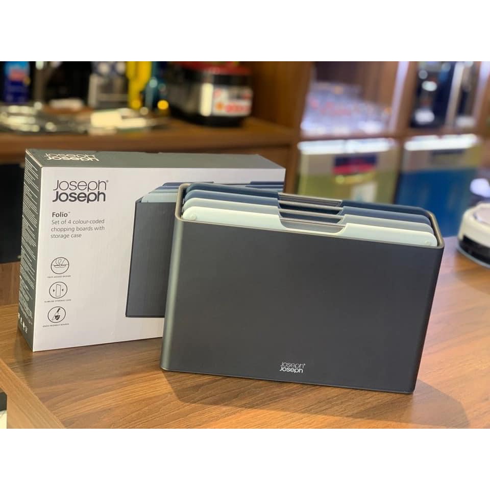 Set 4 Thớt Joseph 60184 Folio size lớn 34 x 24cm👉Bộ thớt Joseph Joseph gồm 4 tấm thớt bằng nhựa tổng hợp siêu nhẹ, siêu mỏng. giải quyết những vấn đề khó khăn mà các bà nội trợ thường xuyên gặp phải .