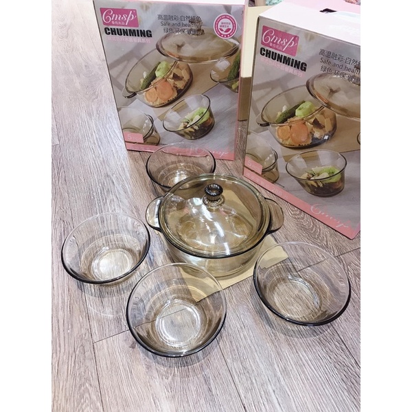 - Sản phẩm: Bộ tô thủy tinh chịu nhiệt có tai cầm (Nồi đựng không thể nấu)