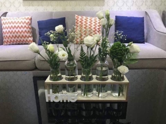 Nhà cửa & Đời sống > Trang trí nhà cửa > Bình trang trí || SÉT 5 BÌNH HOA THUỶ TINH KÈM KHUNG GỖ CHỮ HOMECòn hàng