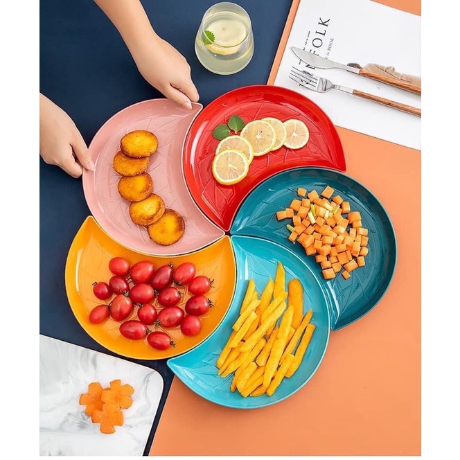 Nhà cửa & Đời sống > Bộ đồ bàn ăn > Dĩa || Sét 5 Đĩa Nhựa Hình Bán NguyệtFREESHIPBộ 5 Đĩa Nhựa Decor Hình Cánh Hoa Siêu ĐẹpCòn hàng